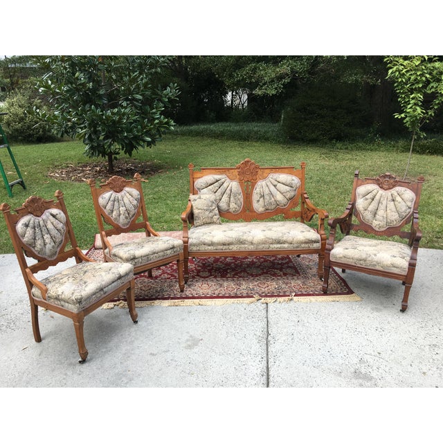 Maple Victorian Settee with Matching High-Back Chair at ... from a.1stdibscdn.com All original from the early 1900s. This sofa was made from hand carved solid walnut and stands on elegant faceted front legs and. Victorian east lake chair & settee, pair of 1890's french plaster & wood sidetables, 1930's telephone. Settee, rocking chair, arm chair, 2 chairs. The cushion is in good shape, still has a bounce to it! This is a fantastic english antique victorian walnut framed double chair back settee, circa 1860 in date. Shop with afterpay on eligible items. Stripping & measuring for fabric.